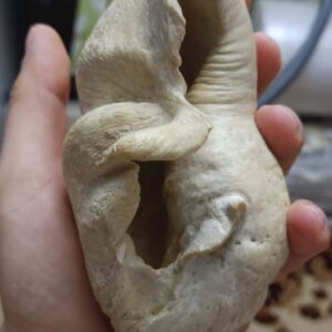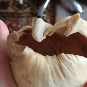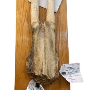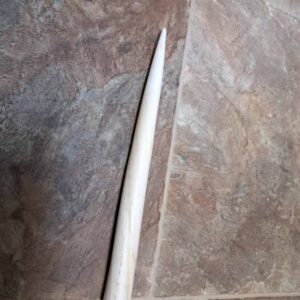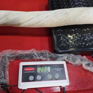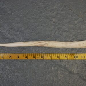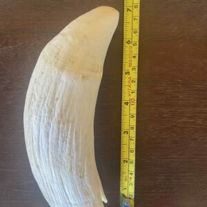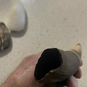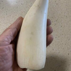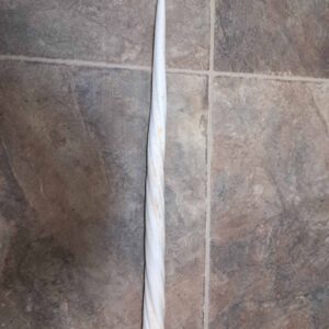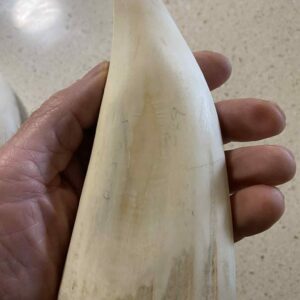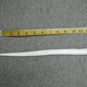 The Narwhal tusks are hollow nearly all the way to the tip. Only the last inch or two is solid. The hole in the middle of the tusk is about 1/2″ in diameter on 5′ tusks. The width of the hole expands nearer the base. The longer tusks from older animals have a much thicker base than the younger ones.