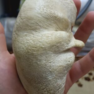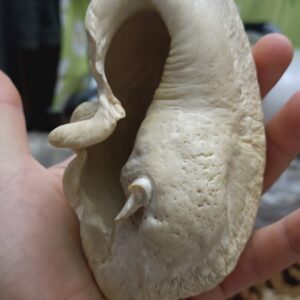 This exceptional 13.3 cm whales eardrum, often referred to as a “whale’s ear bone” or tympanic bulla, represents a rare and fascinating piece of marine mammal anatomy. Found in excellent condition, this specimen showcases the dense, intricate structure that once played a vital role in the whale’s unique underwater hearing system.